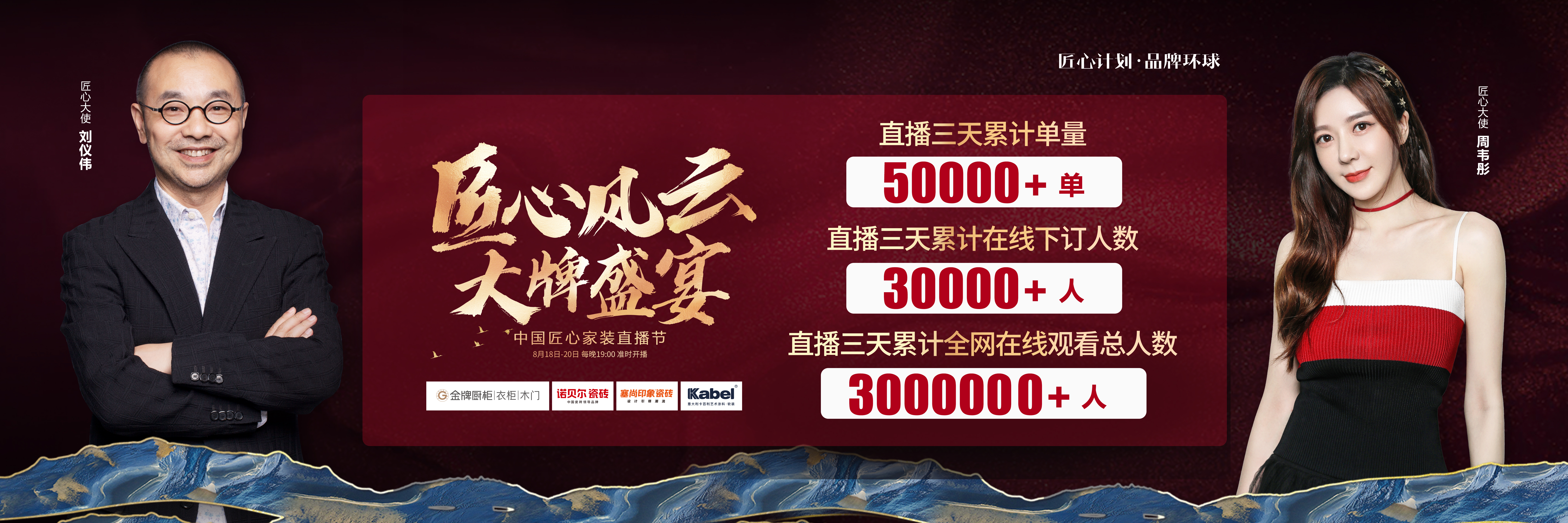 由Z6尊龙凯时厨柜、诺贝尔瓷砖、塞尚印象瓷砖、卡百利艺术涂料联合缔造,创赢科技系统支持全案营销执行的“匠心风云 大牌盛宴”中国匠心家装直播节于8月20日圆满落...