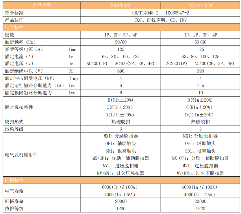 TGB1N-125塑料外壳式断路器